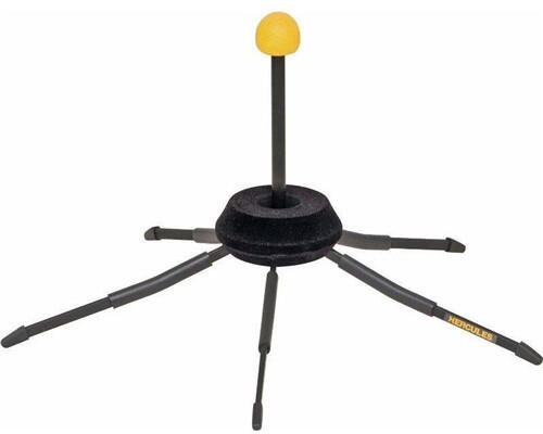 A Hercules DS410B egy fekete-sárga színű, fém alapú trombita állvány, amely kompakt és összehajtható. Ideális választás, ha könnyen szállítható megoldásra van szükség. A hozzá tartozó bársonytáskában könnyen lehet szállítani. A trombita korpuszába helyezhető és bársonypárnák védik a hangszert az összes érintkezési ponton. Főbb jellemzők: Magasság: 175 mm S