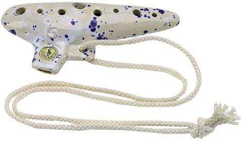 GEWA 700494 C-Hangolású Okarina, 18,5 cm kerámia, finom zománccal nyakba akasztható zsinórral, táskával és fogástáblázattal színe: fehér, kék pöttyökkel