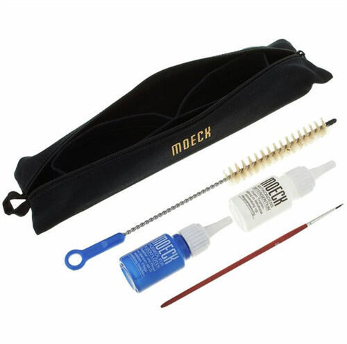 FA furulyák ápoló szettje tartalmaz egy ecsetet, egy ápoló olajat, egy anti-kondenz folyadékot és egy tisztító kefét.