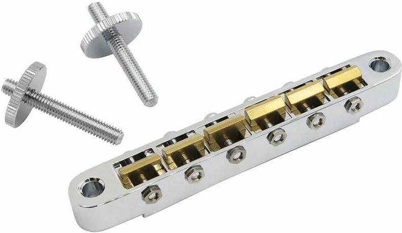 by Gotoh vintage style T-O-M bridge, 12&;quot; radius, brass unnotched saddles, chrome This vintage style T-O-M bridge is manufactured by Gotoh and is based on their GE104B bridge. It is designed to be more suitable for vintage LP style guitars: - 12&;quot; / 300mm radius: The 12&;quot; radius is used on most LP type electric guitars. For a well setup instrument it's preferred to match