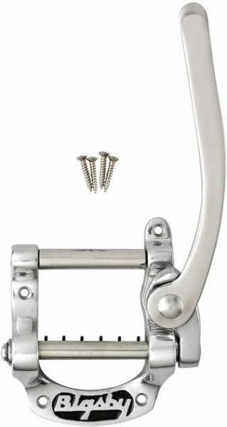 vibrato tailpiece kit, chrome, for flat top guitars The Bigsby vibrato unit is installed on the top of the guitar and works in conjunction with a rocker bridge. The arm of the Bigsby is spring loaded and attached to a pivoting metal bar, around which the strings of the guitar are installed. In the neutral or unused position, the pressure of the spring counterbalances the pull of the strings, resul