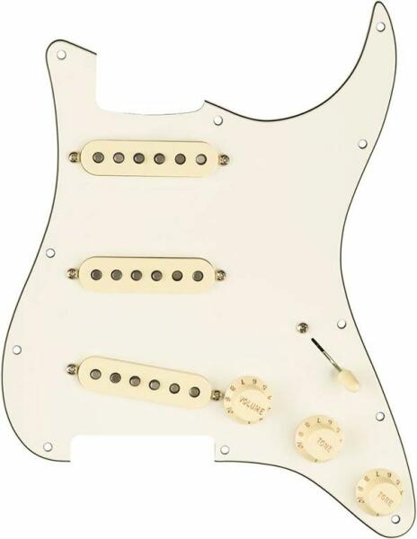 Original '57/'62 SSS, 11 screw holes, parchment Customize your tone with the Pre-Wired Stratocaster pickguards. Made with premium components in the same factory as our iconic guitars, this drop-in pickguard is easy to install. Simply remove your old guard, solder the output jack and ground wires, screw in the new guard and you’;re ready to rock with pure Fender sound. Features Original '57/'62 P