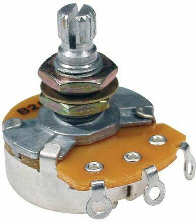 potentiometer 20 pcs bulk pack, standard 500K linear - standard length bushing . 375&;quot; - 3/8&;quot; diameter Value: Typically 250K pots are used for single coil pickups and 500K pots for humbucker pickups. The bigger the resistance value, the brighter the sound will be/ less highs will bleed off. 1MEG can be used to make humbuckers sound brighter. Taper: The taper of a pot refers to t