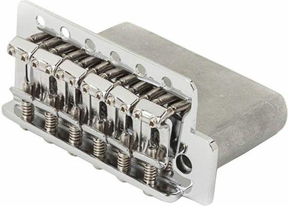 tremolo assembly Standard Series Strat (’06-present), chrome Vintage-style chrome bridge assembly for use on most Standard, Deluxe, Roadhouse;, Lone Star;, and Blacktop Stratocaster models manufactured from 2006-present. Includes six bent ";Fender";-stamped saddles, intonation screws and springs, and saddle-height adjustment screws. Mounting hardware, tremolo claw, tremolo springs and tremolo ar