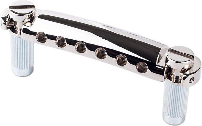 T1ZSA tailpiece, for USA guitars, nickel stop tailpiece for Tune-O-Matic bridges made of aluminum for true 50&;#039;s vintage feeling and improved extra resonant quality mounting studs with US thread (imperial) fit most guitars with Tune-O-Matic bridges 82.0 mm (3.228&;quot;) stud distance incl. hex key nickel finish