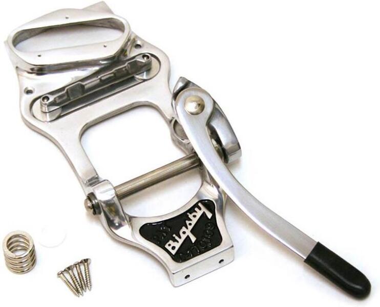 B16 vibrato tailpiece, with bridge and neck shim, polished aluminum A Bigsby®; equipped guitar will give you the expressive, fluid sound that only a true Bigsby vibrato can produce. The go-to choice for guitar players looking for unparalleled performance and vintage style, a Bigsby vibrato delivers smooth and accurate pitch changes, allowing you to create subtle vibrato effects. Its classic look