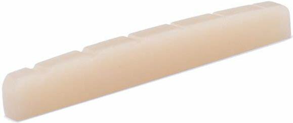 top nut for electric guitar, Stallion model, unbleached bone, 44x6x3,2mm, pre-filed The string slots are pre-filed, the string spacing is 35,2 mm. Flat bottom. This nut is made from unbleached bone, a long-time favourite of many luthiers. The slightly self-lubricating properties of unbleached bone as opposed to the very white bleached bone are a good reason to use this nut material. When polished,