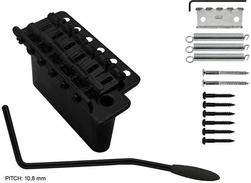 tremolo, pitch 10,8mm, with screws, zinc block, black