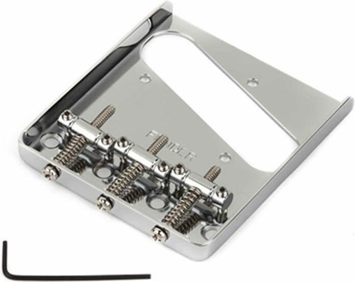 bridge assembly Highway One Tele, chrome Chrome-plated string-through-body bridge assembly for use on Highway One; series Telecaster guitars. Mounting hardware not included. Features Chrome-plated bridge assembly String-through-body design Three single-groove &;quot;barrel&;quot; saddles Four-screw mounting Mounting hardware not included For Highway One Telecaster guitars