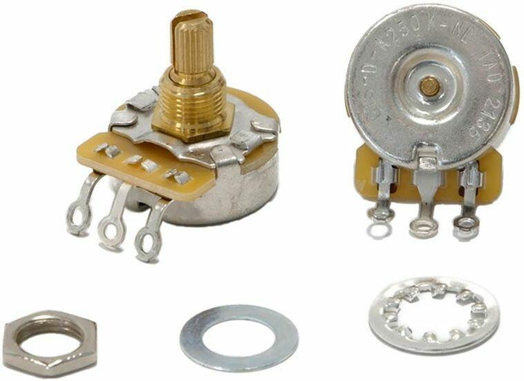 250K audio no-load potentiometer, short bushing . 250";, 3/8"; diam. , dished back, pickguard mount NO-LOAD: allows more overtone harmonics! Much like the Fender ";No-Load"; pot this no-load pot acts as a true bypass when rotated between 9 and 10. The main difference from the Fender ";No-Load"; is that this pot has the dished back (similar to the original specs for vintage Stratocaster®; Guitars)