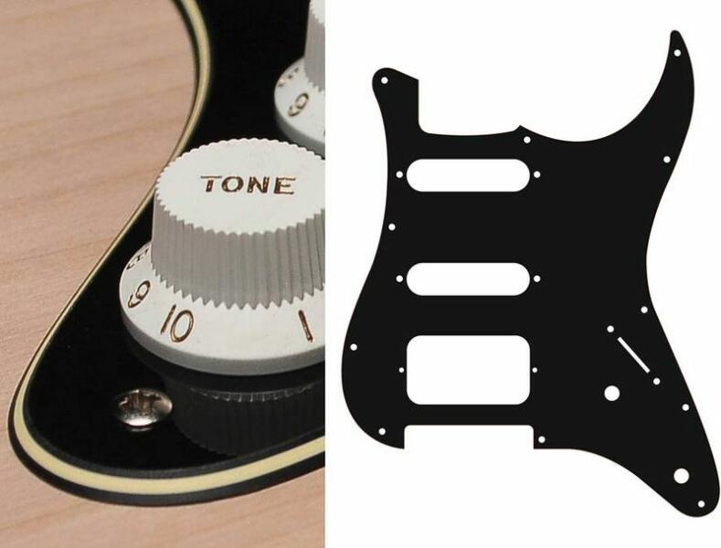 pickguard, Stallion, SSH, 2 pot holes, 3-5 switch, 3 ply, black and cream