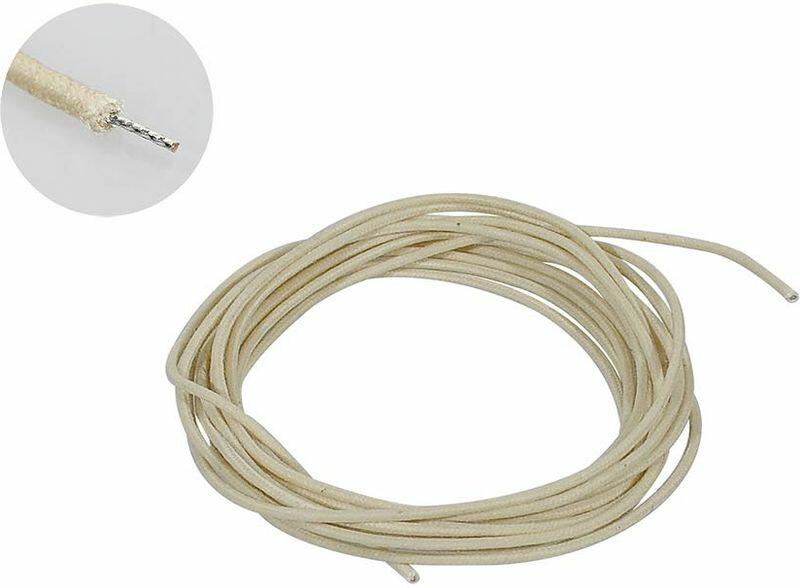 USA made (Gavitt) waxed cotton braided push back wire, white, 10 feet 10 feet = 3.04800 meters This genuine USA made vintage style push back wire is the ultimate choice for wiring or rewiring your guitar. No need to strip the outer braid, just push back and solder. The stranded, tinned core makes soldering much easier, especially with pots or lugs. Also, it makes the wire stiff and therefor easy t