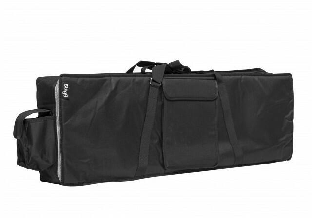 Bélelt nylon szintetizátor tok Méretek: 99 x 42,5 x 16 cm Szivacs bélés: 10mm Oldal zseb a tartozékoknak Szín: fekete