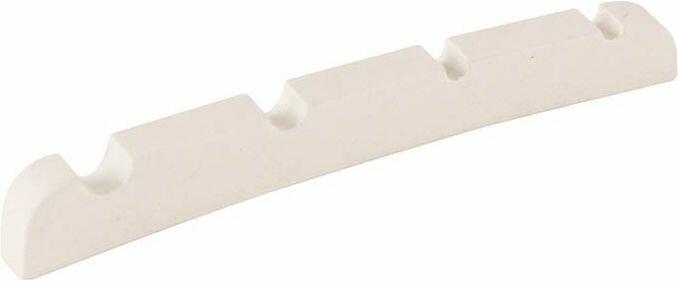 bridge for guitar with tailpiece, hard wood, plastic saddle Dimensions: - 122mm (l) x 10mm (w) - Saddle width: 70mm - Action/height: 18mm (E) - 17mm (e) Boston Musical Products is also known for its wide range of guitar parts for both electric and acoustic guitars, but also bass and other string instruments. With over 3,000 guitar parts, Boston is ideal to upgrade or repair your instrument, but al