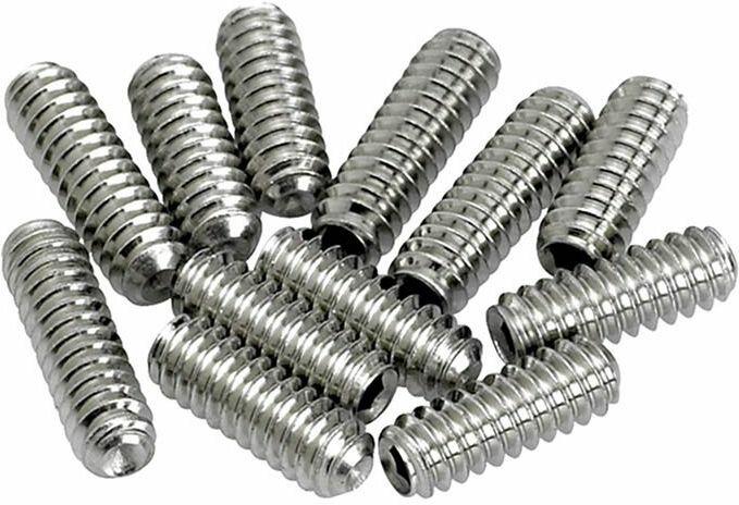 saddle height screws, American Vintage Series guitars, nickel, 12 pcs Set of four short (4-40x3/8&;quot;) and eight long (4-40x5/16&;quot;) hex set screws used for saddle-height adjustment on American Vintage series Stratocaster and Telecaster bridges.