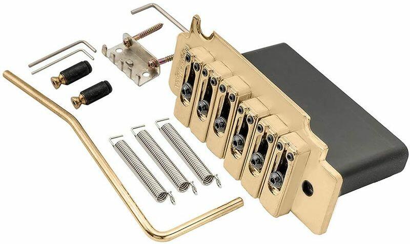 tremolo 2-point, pitch 10,8mm, gold satin A budget version of the classic VS100 vibrato bridge that has set an industry standard &;amp; by which all other vibratos are judged. First conceived in 1986, it has remained in production with virtually no changes, a true test of classic functional design. Precision machined hardened steel base plate with locked down ultra smooth saddles, to give year