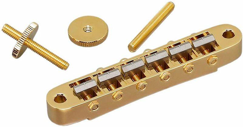 Termék részletekbridge for e-guitar, &;quot;tune-o-matic&;quot; thumbwheel spacing 74,0mm, titanium saddles, gold Gotoh tune-o-matic bridge with titanium saddles. The titanium saddles result in a rich harmonic overtone character and long sustain. &;lt;br&;gt;&;lt;br&;gt;With thumbwheel posts. &;lt;br&;gt;&;lt;br&;gt;&;lt;br&;gt;