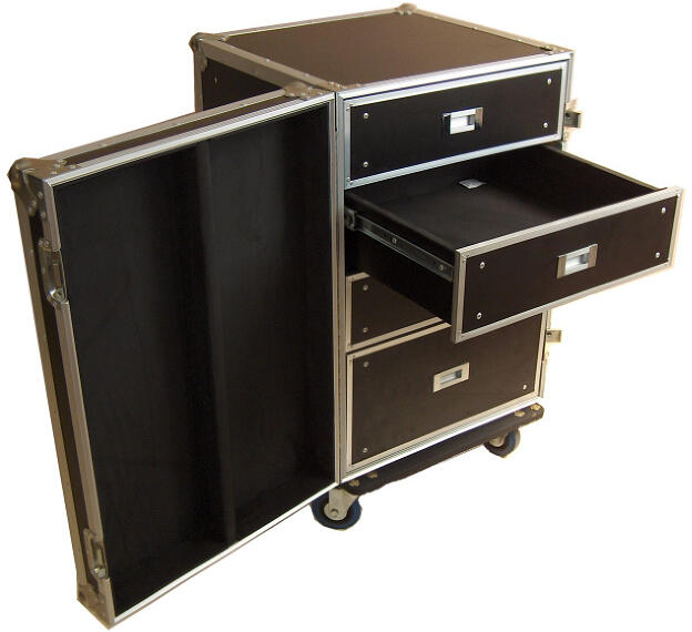 Az RO-DR001 típusjelű fiókos rack dupla falú alumínium profilokból és a 9 mm vastag, fekete színű műanyag bevonattal ellátott rétegelt falemezből ...