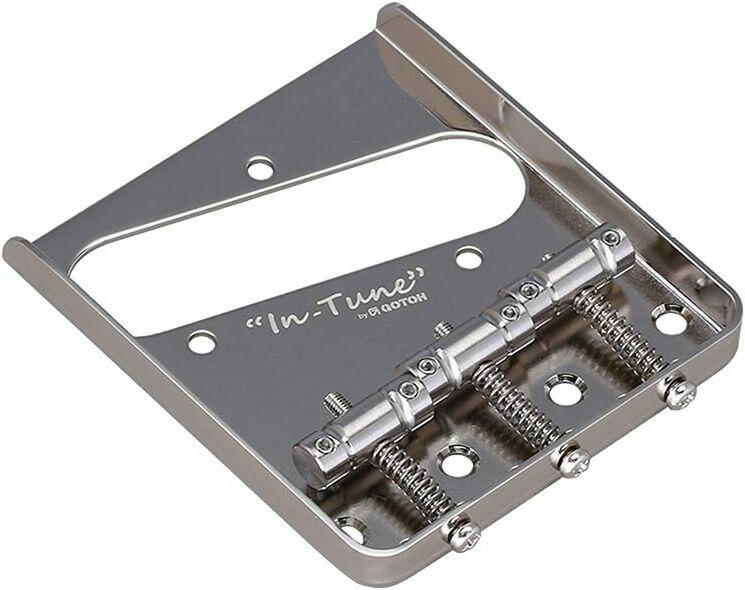 bridge for e-guitar, Teaser, pitch 10,8mm, titanium &;quot;In-tune&;quot; saddles, nickel Gotoh high quality bridge for TE-model electric guitars. &;lt;br&;gt;&;lt;br&;gt;Gotoh&;#039;s unique grooving on the ;In-Tune; saddles results in more exact intonation compared to traditional vintage-style saddles. Each titanium saddle is reversible and can be used in any position