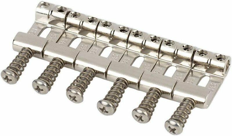 contoured vintage S-style bridge saddles 10,80mm string spacing, nickel, set of 6 Recessed screws, so no more handpalm injuries! Quicker attack &;amp; better sustain Vintage looks Nickel plated, Gloss or Reliced