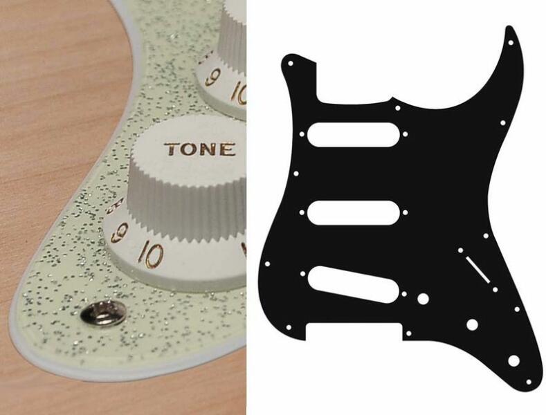 pickguard, Stallion, standard, SSS, 3 pot holes, 3-5 switch, 2 ply, sparkling champagne