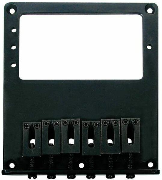 bridge-tailpiece, Teaser, block saddles, flat plate /for humbucker, black Dimensions: - Bridge plate: 101mm (l) x 89mm (w) - Distance body mounting screws (heart to heart): 80mm (w) x 90mm (l) - String spacing: 54mm