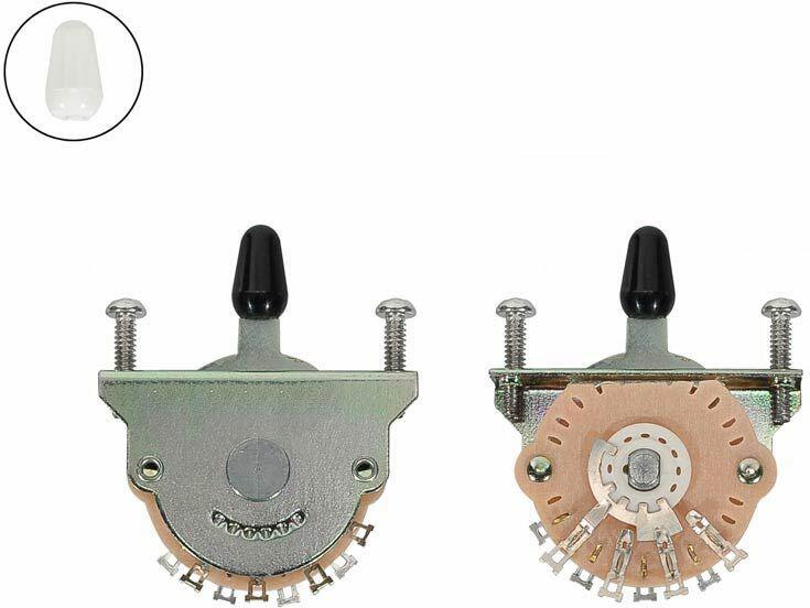 lever switch, 5-way, for strat, bolts and cap included Features Five-position blade pickup selector switch White and black switch tips included Mounting hardware included For most American, American Standard, American Special, Standard and Deluxe series Stratocaster models