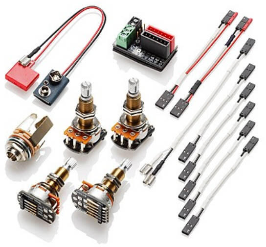 Kiegészítő vezeték és potméter készlet 1 vagy 2 aktív humbucker hangszedőhöz. A csomag tartalma:2db hosszú menetes hangerő potméter2db hosszú menetes hangszín potméter1db ...