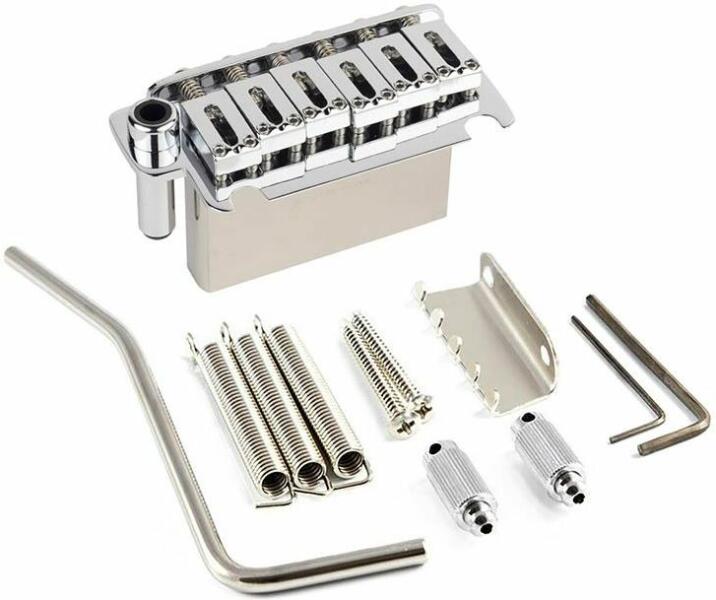 tremolo, pitch 10,8 mm, steel block, solid steel saddles, 2 pivot point, chrome This high quality Gotoh tremolo is equipped with solid steel saddles. The baseplate is made from hardened steel, the tremolo block is also made of steel, both to improve tone. The steel block/steel baseplate is revered by all tone hounds as the must-have for tremolos. This can be a direct replacement for earlier Americ