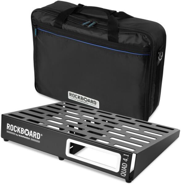 RockBoard QUAD 4.1, Pedálboard hordtáskával A RockBoard RBO B 4.1 QUAD B pedálboard körülbelül 7-12 pedálnak biztosít helyet, a pedálok méretétõl függõen, és egy tökéletesen illeszkedõ hordtáskával rendelkezik. Robusztus, vízlepergetõ RokTex felülete, megerõsített PVC alja és 10 mm-es párnázása kiváló védelmet és könnyű szállítást biztosít. Úgy tervezték,