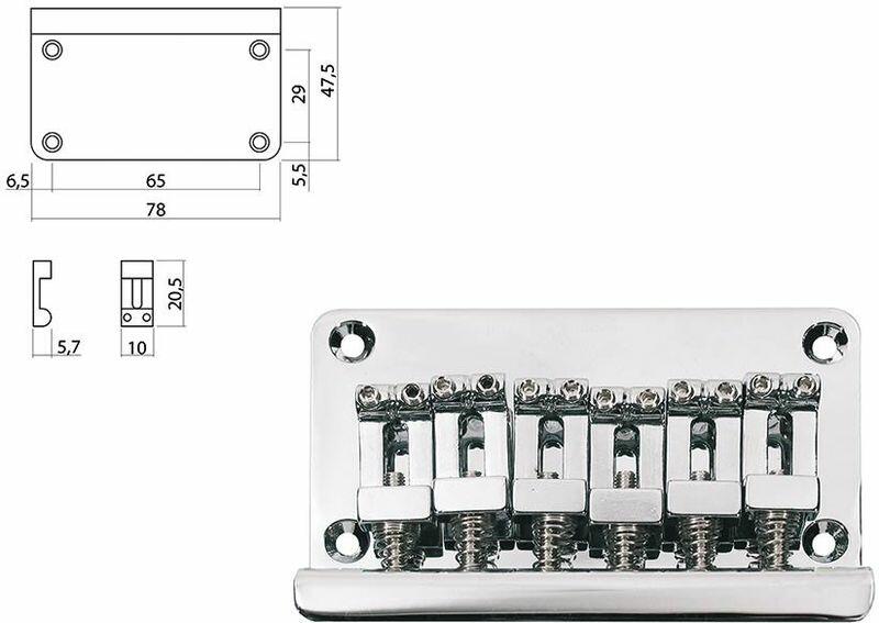 tremolo, pitch 10,8 mm, zinc die-cast FST block, steel solid saddles, 6 pivot point, chrome 510T series does not follow conventional vintage style, but instead pursues the goal of greater tremolo functionality. It has a low clearance arm system of our own design. To guarantee a strong and hard-wearing tremolo blade, extremely resilient chromium molybdenum steel was adopted for the plate. It’;s f