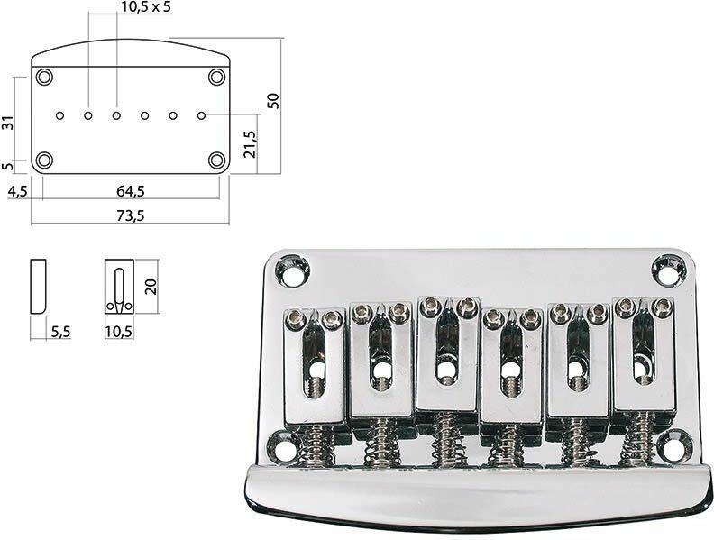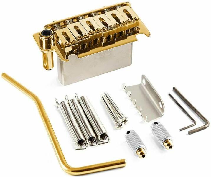 tremolo, pitch 10.5mm, steel block, steel solid saddles, 2 pivot points, gold This high quality Gotoh tremolo is equipped with solid steel saddles and features a narrow string spacing (10.5mm saddle width). Both the baseplate and the tremolo block are made from hardened steel to improve tone. The steel block/steel baseplate is revered by tone hounds as the must-have for tremolos. It features two p