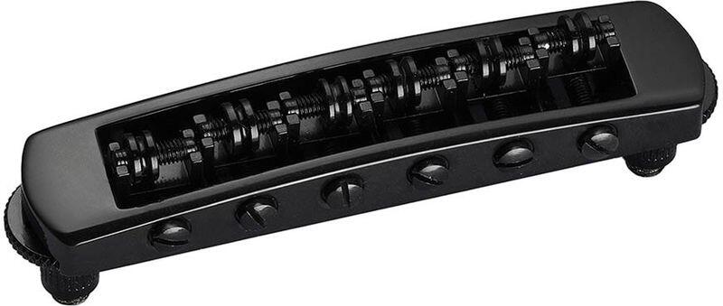STM guitar roller bridge (for tremolo use), 10,6mm spacing, 14&;quot;radius, black chrome High-quality bridge for all Les Paul;* type guitars. Compatible with post spacings from 74.0 - 74.5 mm Adjustable for height, intonation and string spacing Low-friction roller saddles for excellent tuning stability –; perfect for Bigsby;* vibratos Comes with 2 different type saddle rollers to suit tone