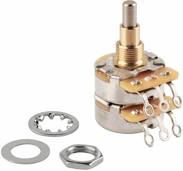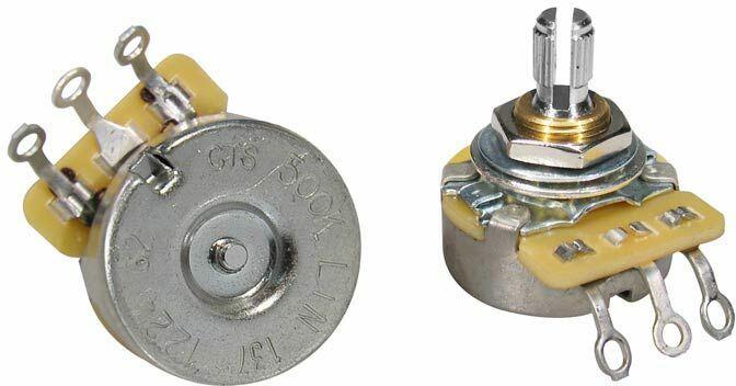 potentiometer 20 pcs bulk pack, dished back, short 500K linear Value: Typically 250K pots are used for single coil pickups and 500K pots for humbucker pickups. The bigger the resistance value, the brighter the sound will be/ less highs will bleed off. 1MEG can be used to make humbuckers sound brighter. Taper: The taper of a pot refers to the way its resistance changes as the shaft is rotated. A li