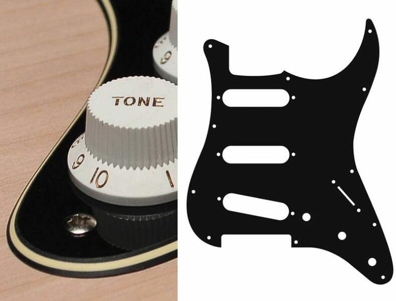 pickguard, Stallion, standard, SSS, 3 pot holes, 3-5 switch, 3 ply, black and cream