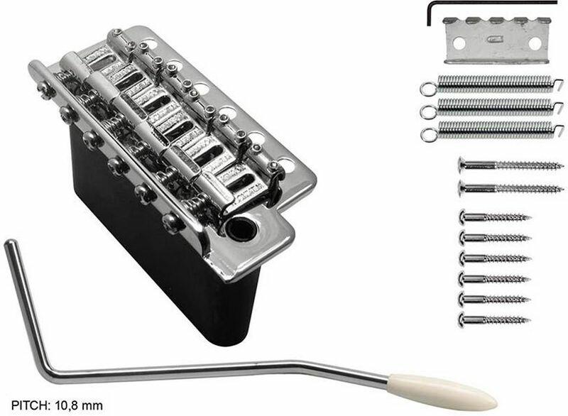 tremolo, pitch 10,8mm, with screws, steel block, chrome