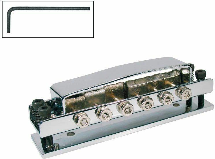 STM guitar roller bridge (for tremolo use), 10,6mm spacing, 14&;quot;radius, chrome High-quality bridge for all Les Paul;* type guitars. Compatible with post spacings from 74.0 - 74.5 mm Adjustable for height, intonation and string spacing Low-friction roller saddles for excellent tuning stability –; perfect for Bigsby;* vibratos Comes with 2 different type saddle rollers to suit tone and st