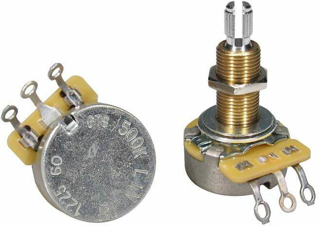 potentiometer 20 pcs bulk pack, long 500K linear Value: Typically 250K pots are used for single coil pickups and 500K pots for humbucker pickups. The bigger the resistance value, the brighter the sound will be/ less highs will bleed off. 1MEG can be used to make humbuckers sound brighter. Taper: The taper of a pot refers to the way its resistance changes as the shaft is rotated. A linear taper pot