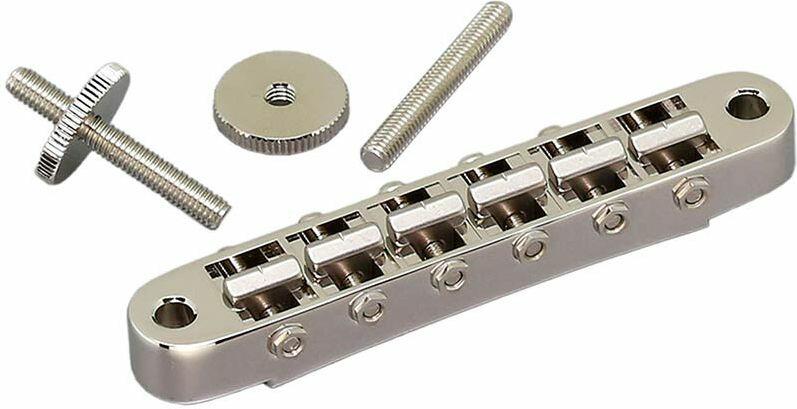 Termék részletekbridge for e-guitar, &;quot;tune-o-matic&;quot; thumbwheel spacing 74,0mm, titanium saddles, nickel Gotoh tune-o-matic bridge with titanium saddles. The titanium saddles result in a rich harmonic overtone character and long sustain. &;lt;br&;gt;&;lt;br&;gt;With thumbwheel posts. &;lt;br&;gt;&;lt;br&;gt;&;lt;br&;gt;