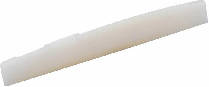 bridge saddle, unbleached bone, 77,5x10x2,7mm, folk, 14&;quot; arched This saddle is made from unbleached bone, a long-time favourite of many luthiers. The slightly self-lubricating properties of unbleached bone as opposed to the very white bleached bone are a good reason to use this nut material. When polished, the looks of unbleached bone are very elegant and will add class to your guitar.