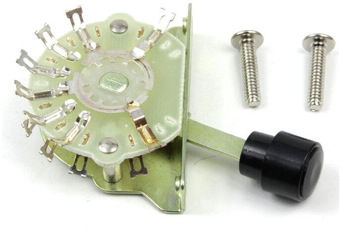 Megaswitch E lever switch 5-way, 40,7mm spacing, bolts included, black cap High quality 5-way switch with a lot of switching possibilities. Please read the attached documentation for all possibilities.