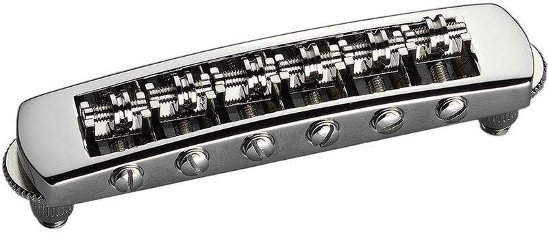 STM guitar roller bridge (for tremolo use), 10,6mm spacing, 14&;quot;radius, nickel High-quality bridge for all Les Paul;* type guitars. Compatible with post spacings from 74.0 - 74.5 mm Adjustable for height, intonation and string spacing Low-friction roller saddles for excellent tuning stability –; perfect for Bigsby;* vibratos Comes with 2 different type saddle rollers to suit tone and st