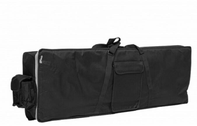 Bélelt nylon szintetizátor tok Méretek: 128 x 42 x 16 cm Szivacs bélés: 10mm Oldal zseb a tartozékoknak Szín: fekete