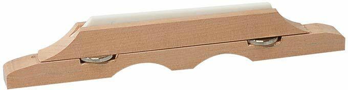 bridge for guitar with tailpiece, hard wood, plastic saddle, adjustable Dimensions: - 122 mm (l) x 10 mm (w) - Saddle width: 68 mm - Maximum adjustable action/height: 25 mm (E) - 24 mm (e) - Minimum adjustable action/height: 21 mm (E) - 20 mm (e) Boston Musical Products is also known for its wide range of guitar parts for both electric and acoustic guitars, but also bass and other string instrumen