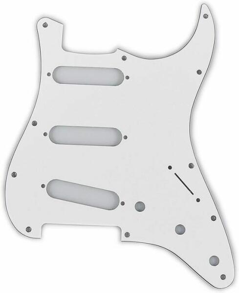pickguard Strat®;, SSS, 11 screw holes, 3-ply, white One of the easiest ways to change the look of your Fender instrument is to replace the pickguard. This pickguard fits American, American Standard, American Deluxe, American Special, Highway One;, Road Worn®;, Deluxe Player, Blacktop, Standard, Deluxe and Modern Player series Stratocaster guitars with three single-coil pickups (also fits Squier