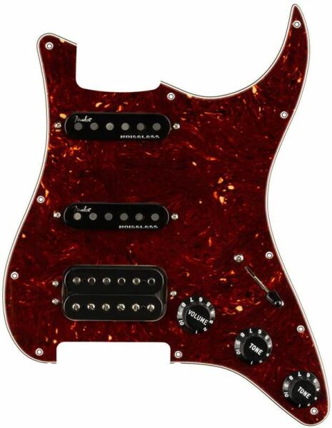Shawbucker Bridge/Gen 4 Noiseless neck/middle HSS, 11 screw holes, tortoise shell Customize your tone with the Pre-Wired Stratocaster pickguards. Made with premium components in the same factory as our iconic guitars, this drop-in pickguard is easy to install. Simply remove your old guard, solder the output jack and ground wires, screw in the new guard and you’;re ready to rock with pure Fender
