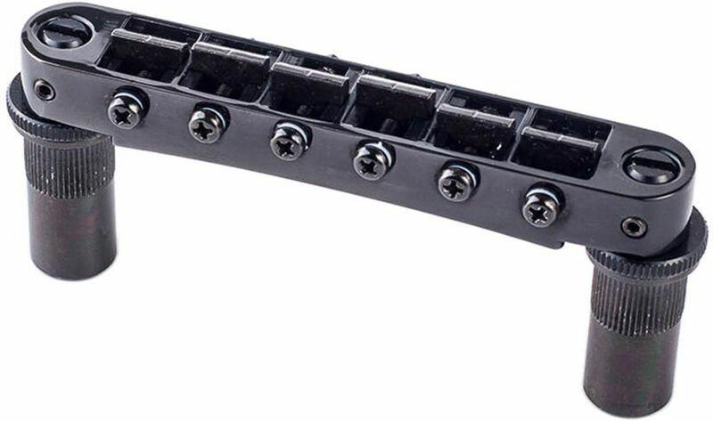 T3BT tune-o-matic bridge, metric/for import guitars, black - Tune-O-Matic bridge for electric guitars - retrofits most guitars with metric hardware without modification - intonation adjustment on the pickup side - allows precise adjustment of the string height and scale through lockable saddles - large posts - pre-notched saddles for quick installation - metric threaded inserts - 73.8 mm (2.905&am