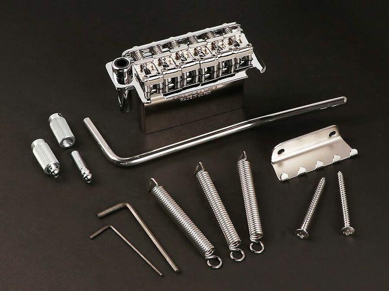 tremolo, pitch 10,8 mm, steel block, sheet metal saddles, 2 pivot point, chrome This high quality Gotoh tremolo is equipped with bent steel vintage saddles. The baseplate is made from hardened steel, the tremolo block is also made of steel, both to improve tone. The steel block/steel baseplate is revered by all tone hounds as the must-have for tremolos. This can be a direct replacement for America