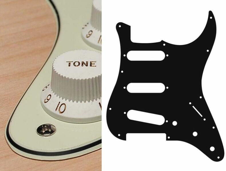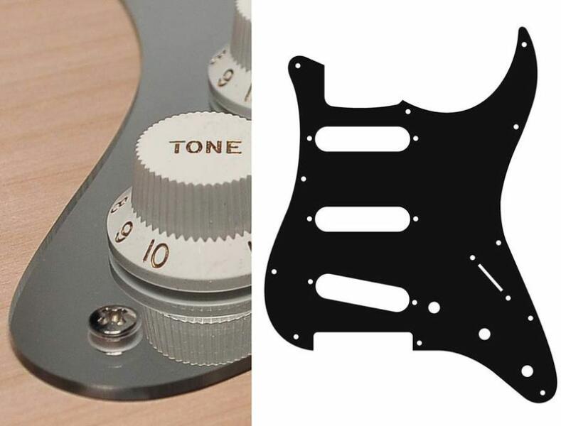 pickguard, Stallion, standard, SSS, 3 pot holes, 3-5 switch, 2 ply, mirror chrome