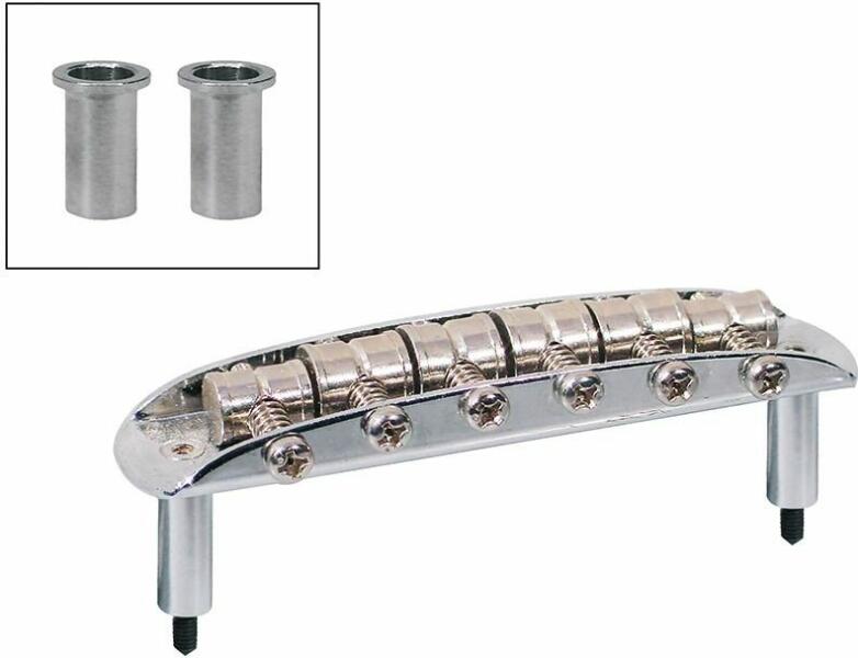 bridge for e-guitar, chrome, mustang style replacement bridge for mustang type guitars specifications bridge anchor diameter: 9mm anchor length: 20mm spacing studs: 73,0mm spacing stings E-e: 56mm radius: 7.25&;quot;